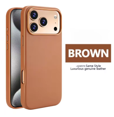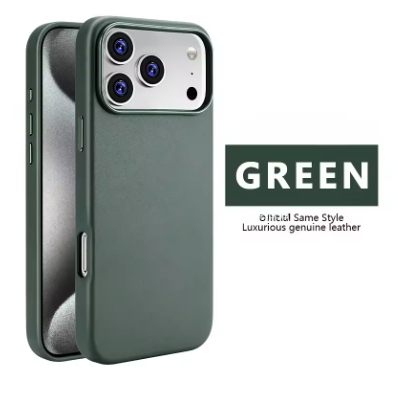 Genuine Leather Phone Case for IPhone 16 Pro Max 17 Air ,Pro, Pro Max High End Strong Magnetic Wireless Charging Cover